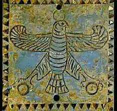 بالهای باز که بر روی نيزه ای بلند نصب کرده اند. نشان از اين است که بر روی پارچه